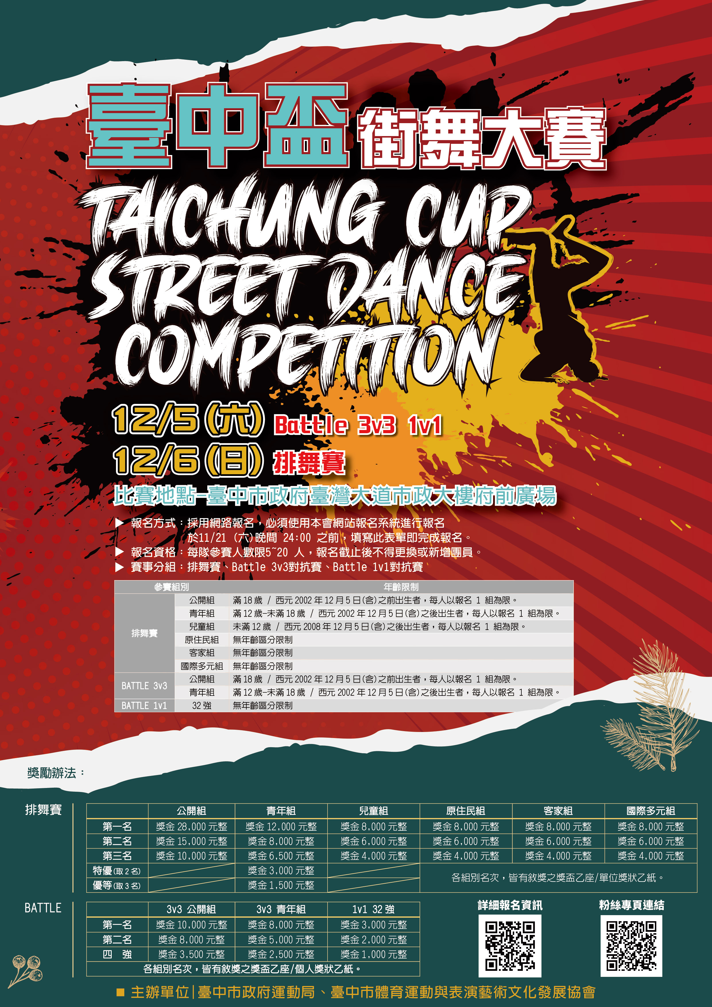 二、主辦單位:臺中市政府運動局 、臺中市體育運動與表演藝術文化發展協會