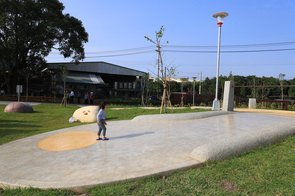 神岡是台中重要雞隻養殖地,生產的「神農蛋」在市面很受好評,建設局以此發想打造新興公園,今日舉行完工啟用典禮。盧市長致詞時特別感謝地方民代的爭取與議會對預算的支持,她說,公園面積8,875平方公尺、工程經費約1,413萬元,除有可愛吸睛的小雞地景,更以神農蛋、黑葉荔枝等在地特色打造入口意象,設有共融遊具,並種植大量喬木、灌木,讓公墓變身為美麗綠地。