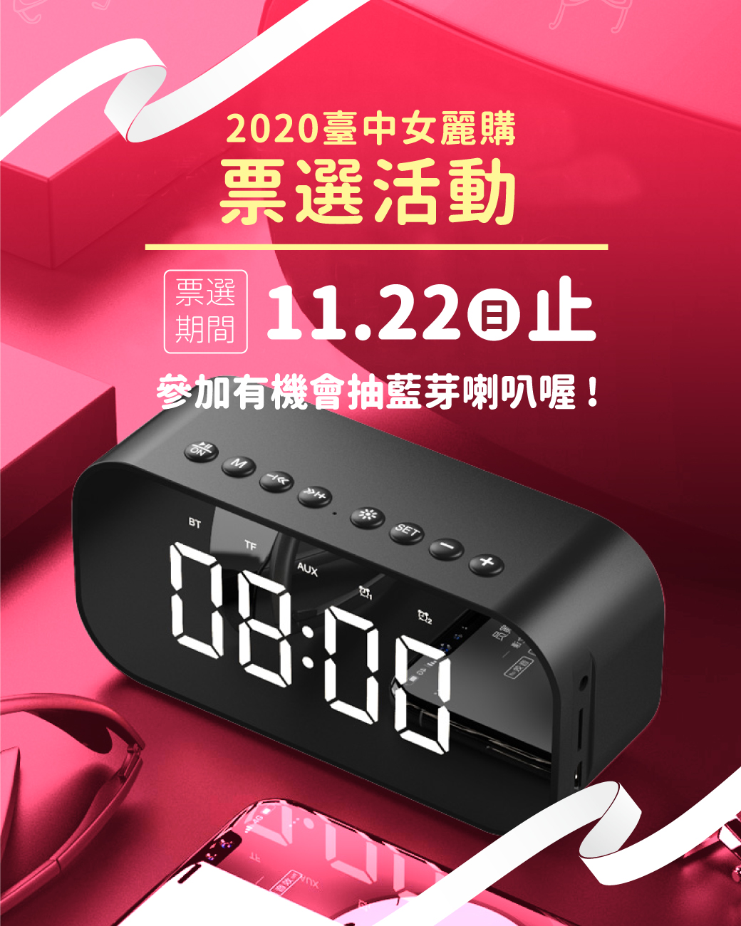 首屆「2020台中女麗購」票選主視覺 投票抽藍芽鬧鐘喇叭