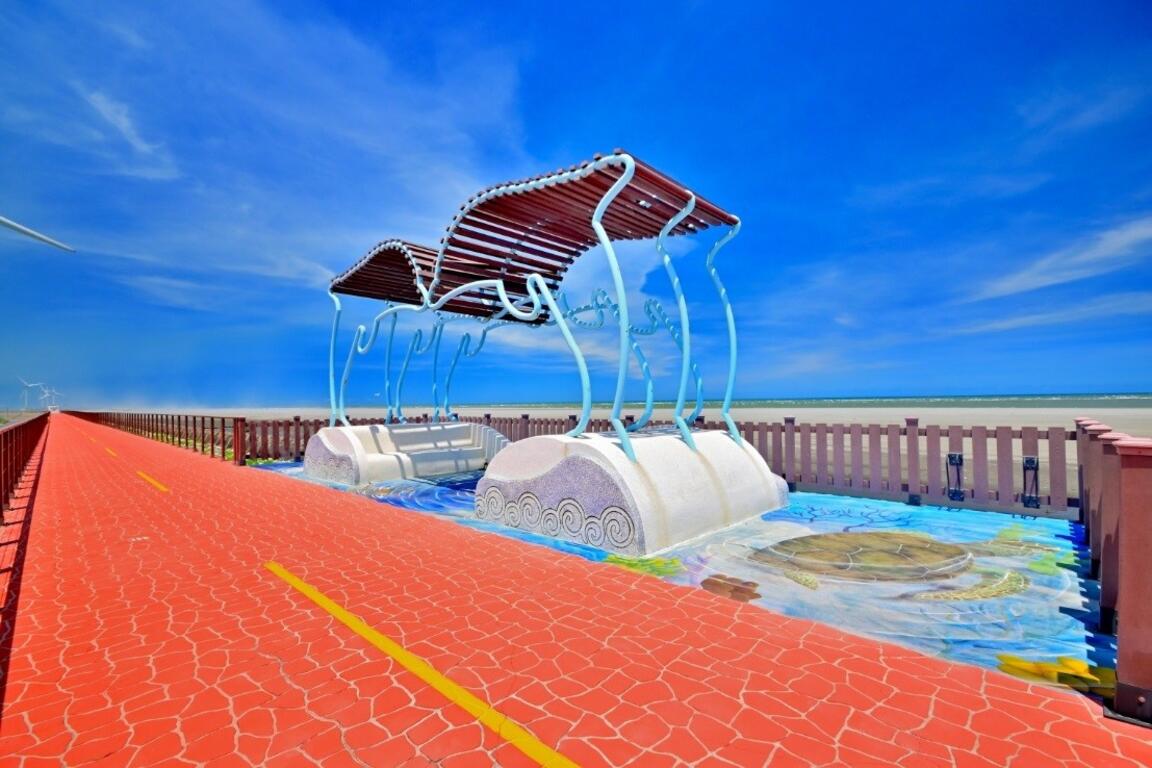 觀旅局表示,往北騎乘至濱海自行車道-大甲段之松柏漁港(船頭埔),單車騎遊遙望大片蔚藍海闊天空,希臘風的藍白花架是情侶最愛的打卡浪漫景點, 騎著單車沿著濱海自行車道一路往南到龜殼生態公園及大安濱海樂園,享受鬆軟的海沙、蔚藍的大安海,在這聽浪、觀海,用雙腳踩動雙輪前進的速度,讓每一寸海岸景色完整地烙進腦海。