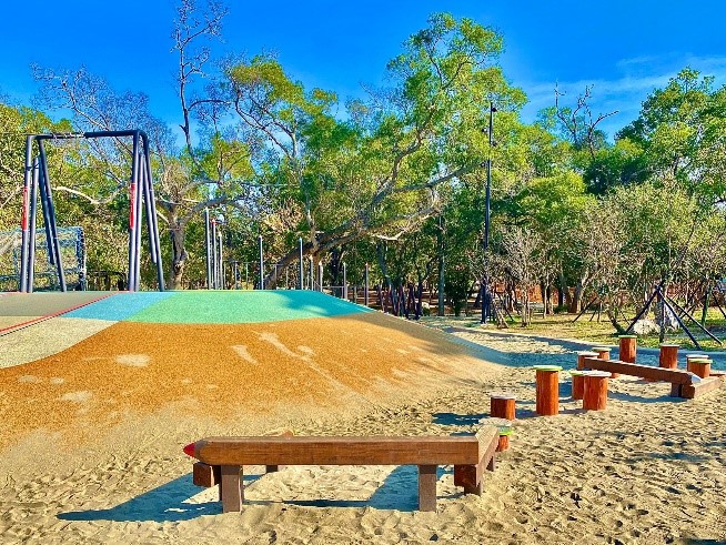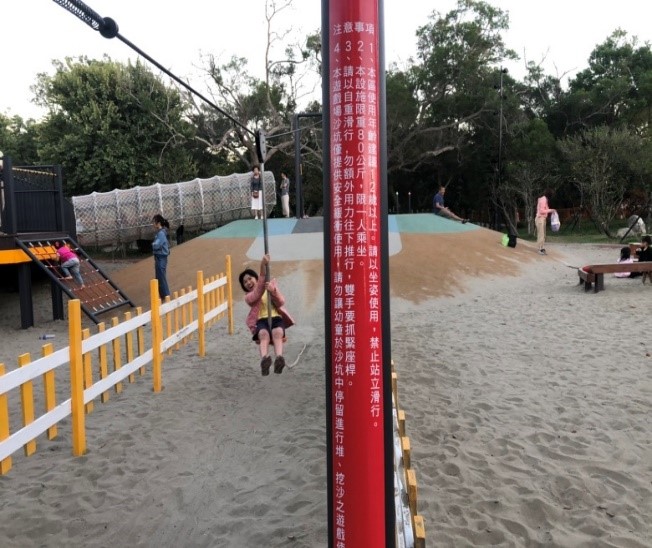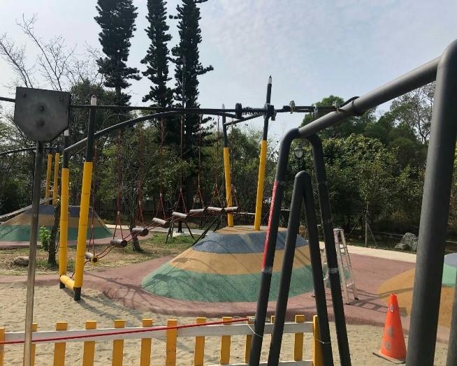 林局長指出,大甲鐵砧山雕塑公園打造全新共融式遊具、觀景平台、青少年兒童互動遊戲場、滑軌設施及全國唯一鋼管爬網,成為老、中、青三代戶外探索最夯的首選遊憩空間,為維護大小朋友的遊憩安全,特別在各類設施增加張貼警示標語、滑軌設施也增設紅色保護纜索,並將公園周邊植栽一併改善維護;市府也投保公共意外相關保險,讓民眾玩得安心、玩得放心,另外也呼籲民眾愛惜並務必遵守各類設施的使用規則。
