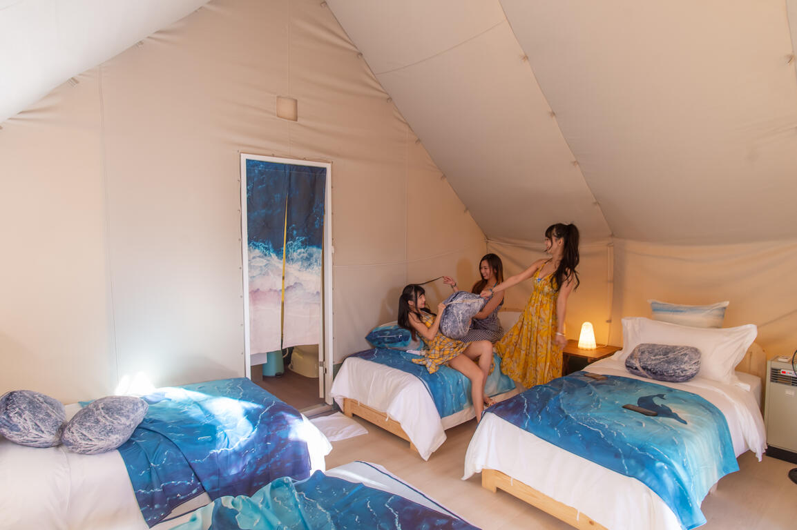 臺中大安濱海樂園自109年7月份起委外營運並開放32帳超豪華露營帳篷以來,吸引許多家庭、情侶、閨蜜及好友等,相揪來體驗大安濱海樂園絕美風貌,感受臺中海線風情的從容閒適、海天一線綿延堆疊的海灘,以及嫣紅晚霞照映的獨有景緻,中市府推薦各地愛好大自然的民眾一同入住大安濱海豪華帳篷,邀請您一同體驗好吃、好玩又好住的年節行程。