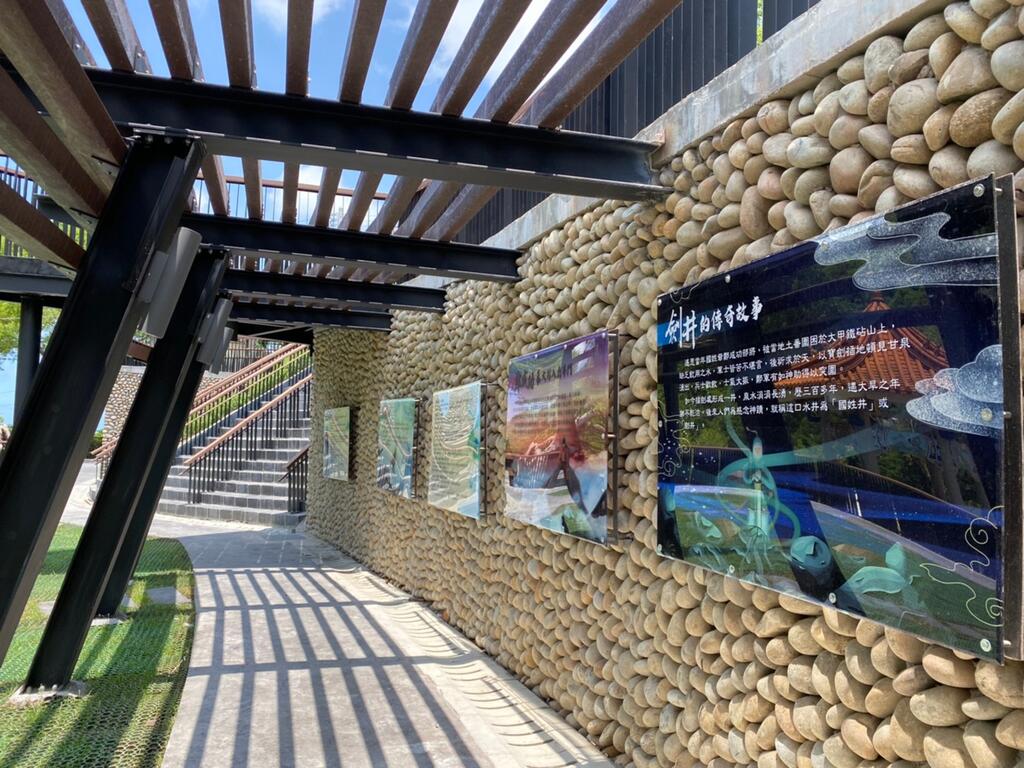 另外,並於劍井大字旁題上擷取自台中文史工作者陳炎正詠劍井的詩「為訪名山上鐵砧,鄭王祠畔豁胸襟。草生殘壘春風蕩,井湧靈泉劍氣深。」為劍井增添文化氣息,體驗遊客可細細品味。