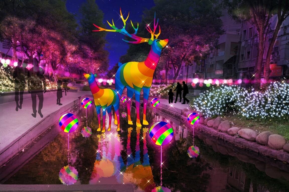 新聞局透露,此次必看亮點,包含全國獨家在舊台中火車站站前廣場,打造10公尺高「有你珍好」珍珠奶茶耶誕樹,由於世界珍珠奶茶發源地就在台中,盼透過珍奶甜蜜意象,傳遞台中的美好。另外,柳川也有高達20公尺「垂涎60尺」水水耶誕樹,以流動循環的水光雕裝置,代表祈福、希望,還有「甜蜜夢工廠」大型燈飾,要將幸福快樂傳遞給每位市民。綠川則有在水面佇立的「甜到會麋鹿」,五彩繽紛的糖果圍繞麋鹿的夢幻場景,要讓大小朋友甜蜜過耶誕。