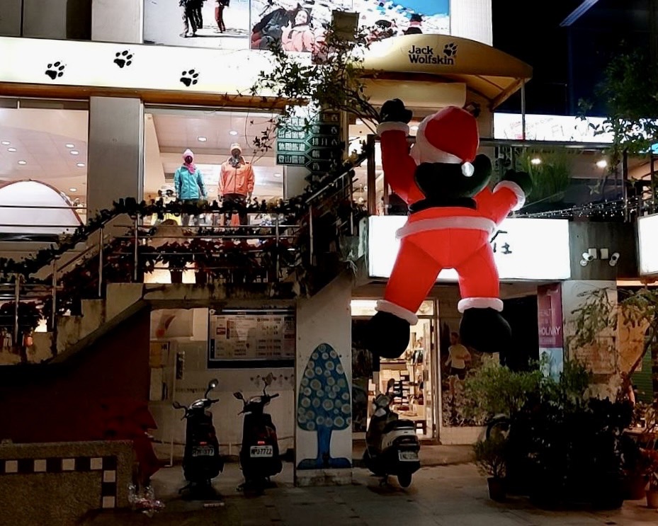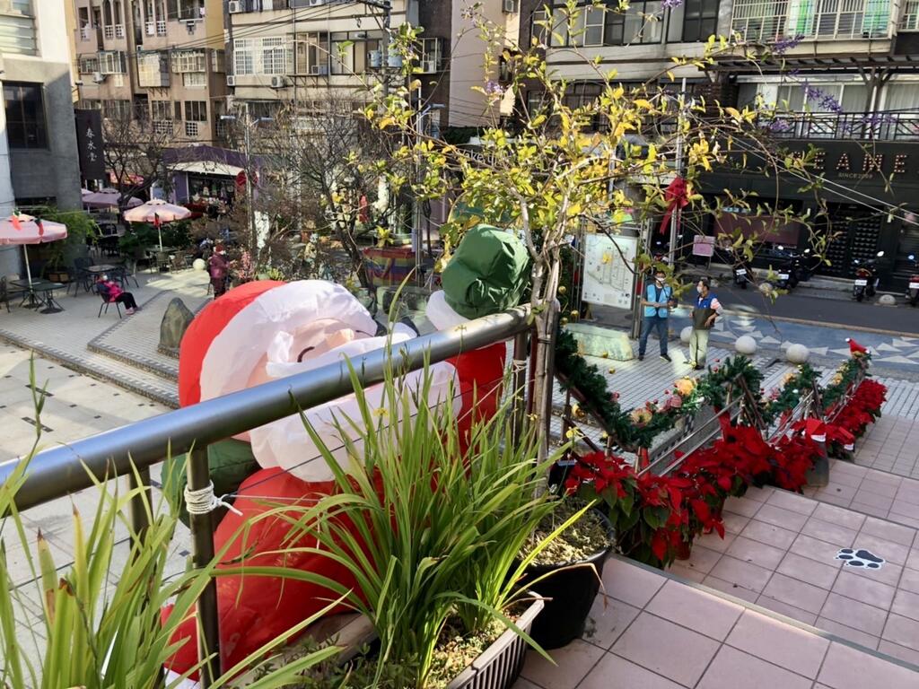 東海藝術街商圈主委郭達鴻指出,商圈於10月舉辦萬聖節變裝遊行後,接到很多回饋,許多民眾都很期待「聖誕節活動」到來;此次活動特別邀請聖誕老人提前到東海藝術街「暖身」,結果聖誕老人太胖了竟然掛在科比意廣場,吸引住戶的拍照打卡。
