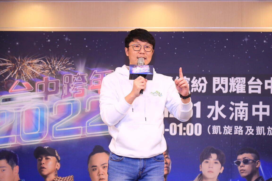 「全台卡司最強!」市府新聞局長黃國瑋表示,「2022虎彩繽紛 閃耀台中跨年夜」移師水湳中央公園舉辦,從12月31日晚間7時正式開唱,配合中央防疫政策,呼籲民眾配合出入口防疫規範,務必全程佩戴口罩,勤洗手並保持個人衛生潔淨,醫護站備有消毒酒精,如有需要可前往使用;此外,跨年晚會現場全程禁止飲食,跨年當天請掃碼1922實名制入場,請民眾多多配合。