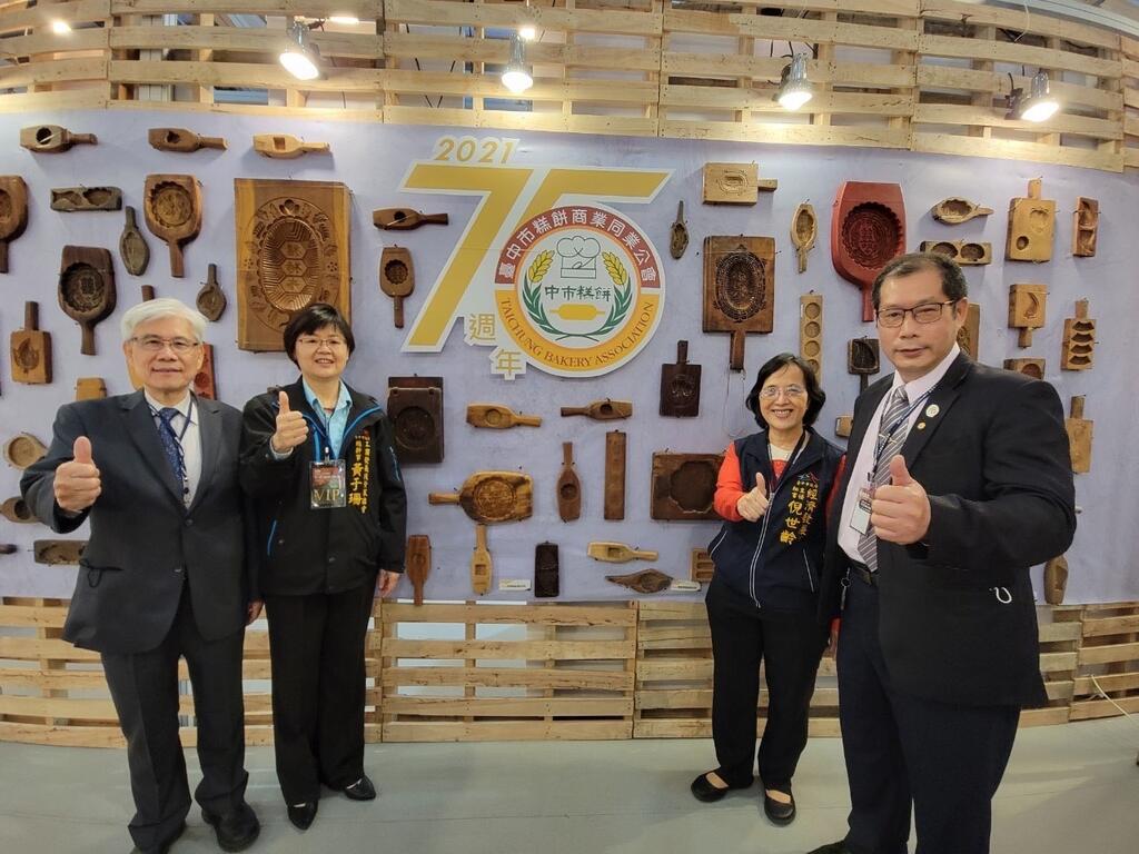 今日開展,台中市工商發展投資策進會總幹事黃于珊、經濟發展局主任秘書倪世齡、食品藥物安全處秘書蔡文哲、台中市糕餅商業同業公會理事長蔡萬財、中華民國糕餅商業同業公會理事長周子良均出席。