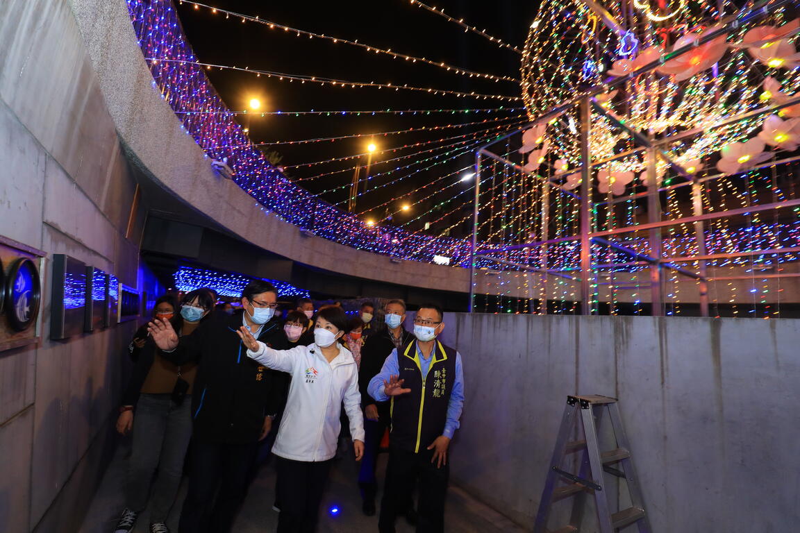 「2021台中好甜」耶誕嘉年華活動才剛圓滿落幕,緊接著在豐原陽明市政大樓及葫蘆墩圳布置元宵燈飾,延續耶誕歡樂氣氛到農曆春節,市長盧秀燕今(15)日出席葫蘆墩圳點燈活動,與在地民眾一起迎接新春到來,並期許大家共同遵守防疫規定、落實防疫措施,平安過好年。