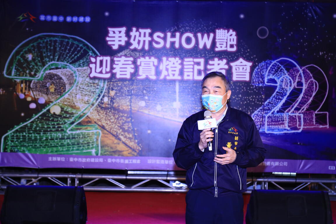 迎春賞燈記者會今日於中央公園舉行,黃副市長指出,台中氣候宜人,加上優美自然風光,除了13處燈飾亮燈外,元宵燈會2月12日將在文心森林公園相繼點燈,歡迎大家來賞燈打卡,也感謝各區長做好防疫工作,讓台中疫情相對穩定,可讓各縣市遊客來遊玩。中央公園除燈會活動外,市府將持續優化,如建置遊樂場、運動場等,請大家拭目以待,也期望大家新的一年身體健康、快樂平安。