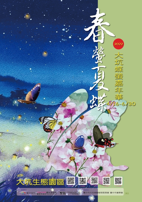 觀旅局說明,今年大坑蝶螢嘉年華將由兒童劇團擔任開幕表演,帶來活潑熱鬧的氛圍,另外還有專業生態導覽、環境教育觀察、露天生態演講及親子手作等,歡迎市民朋友大手牽小手,一起來大坑吃美食、享受大自然。