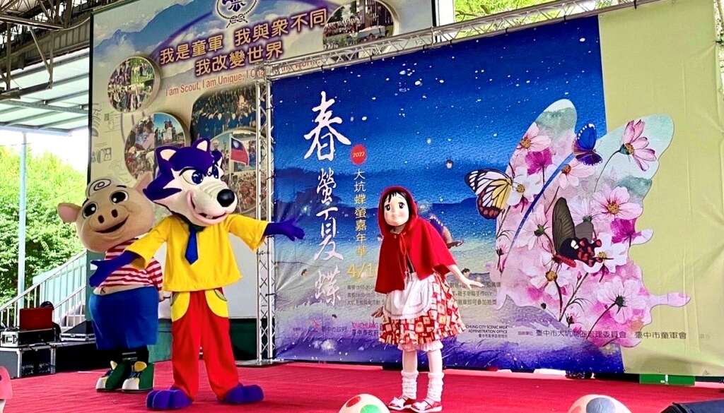 觀旅局說明,昨開幕活動中除有人偶娃娃帶動唱,還有大野狼、小紅帽演出情境劇,配合聯合國永續發展目標(SDGs)中的保育陸域生命、維持生物多樣性議題,結合大坑生態園區蝴蝶多樣性特色,獲得現場小朋友熱情回應。