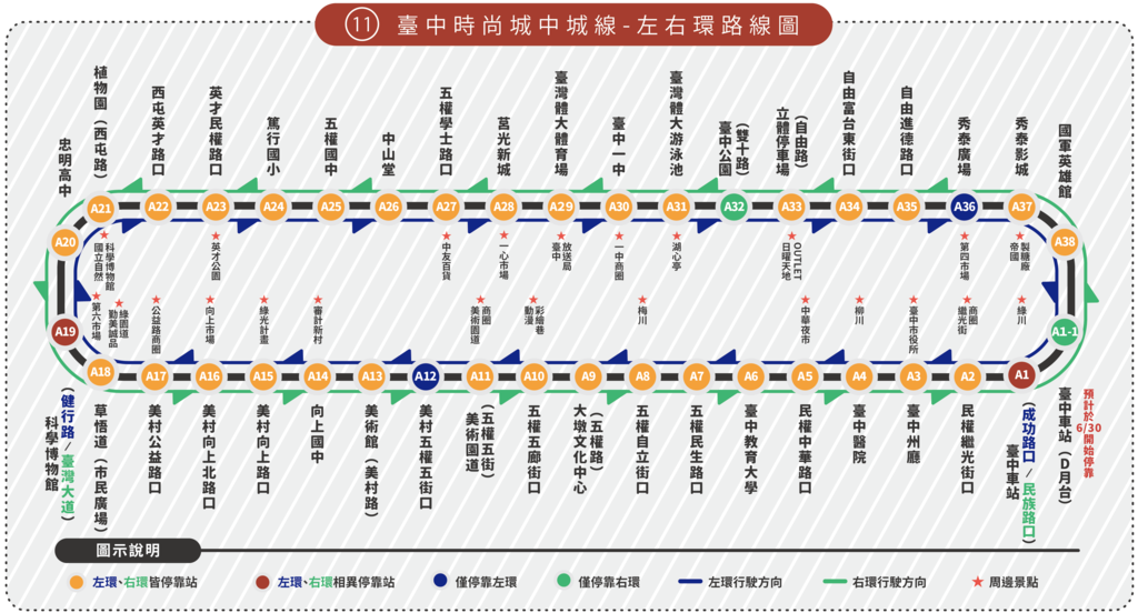 台灣好行-台中時尚城中城線 6/30起右環增停台中車站D月台