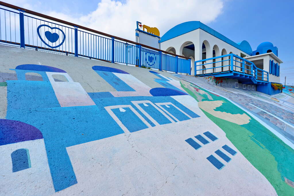 台中市政府近年來積極轉型麗水漁港,把原先不起眼的漁港打造成聖托里尼地中海風的打卡休憩亮點。台中市政府觀光旅遊局表示,今年8月在護岸斜坡繪設希臘風建築物彩繪及馬賽克拼貼,並增設陶板貓咪浮雕及不鏽鋼樹木浮雕,讓護岸增加更多希臘式元素,部分彩繪採取3D方式施作,讓遊客有置身希臘的感覺,盼留下更多美好回憶。