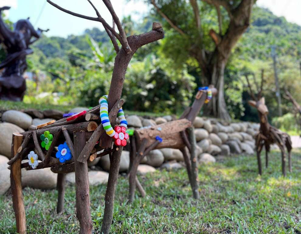 此次藝術祭由4位藝術家與居民共創臨時性公共藝術作品,張育瑋與居民合作完成的〈群躍〉,以回收物、樹枝等材料,在藝術村入口製作大小不一的水鹿群像,回應酒桶山昔日為泰雅族獵場,獵人在山林追逐、群鹿奔驣的歷史記憶。藝術家吳宗彥使用農業廢棄木料,在長青巷入口設置青蛙與蝴蝶造型的作品〈相遇〉,訴說此處豐富多樣的物種與自然環境;吳宗彥表示,創作過程中與居民、藝術家交流,是非常有意義、珍貴的經驗。