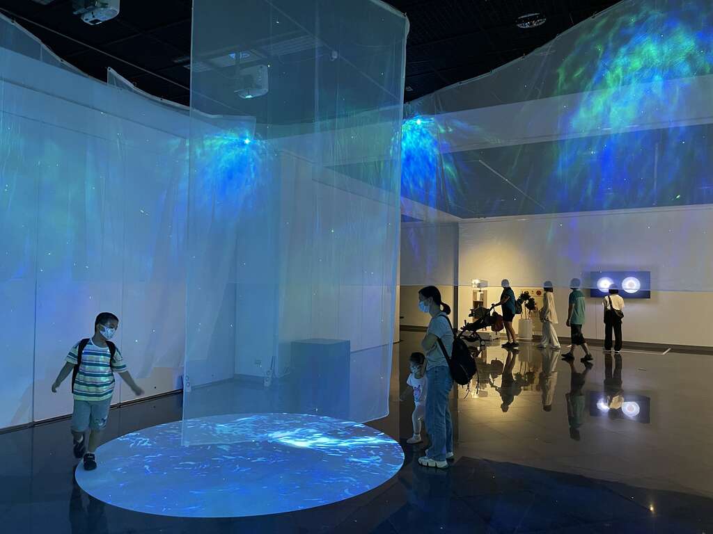 此外,蔡子瑋、李嘉翔及恆有創藝的《海洋光圖》智慧型擴增沈浸媒體,更以台灣海域作為影像研究基底,透過光影星移、地理時間資訊、移動軌跡互動,創造變幻的光譜,民眾可以透過沈浸全息投影,走入海中看見台灣海域特色,感受萬物得以創造滋養的畫面,「光」與「海」的互相效力。
