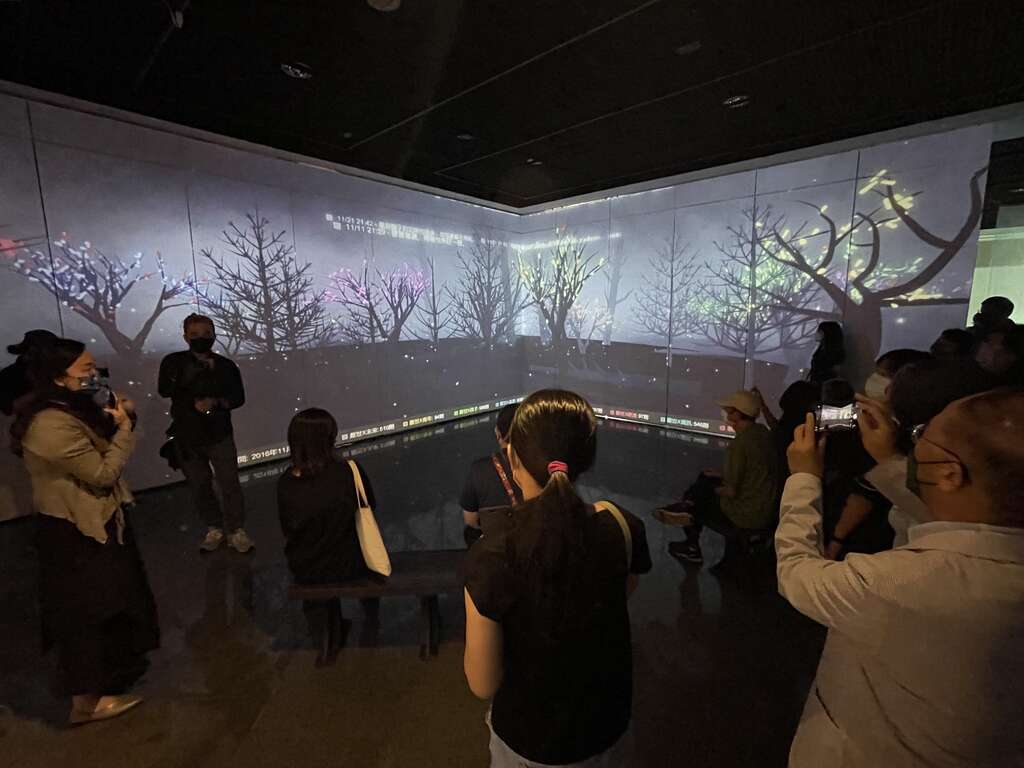 策展人陳韻如則以《數據森林》作品創造出入夜時分的水岸森林情境,主要技術是透過擷取社群關鍵字資訊,將巨量數據資料動態存取、匯入資料庫,再使用3D模擬自動生成樹(Procedural Tree)技術,模擬樹的成長狀態,即時化作不同樣貌的樹,虛擬出栩栩如生的森林。民眾可透過觀看即時光影渲染變化,藉由水的反射、流動與漣漪,花果葉的飄動、花開與掉落等,感受生態環境的氛圍。