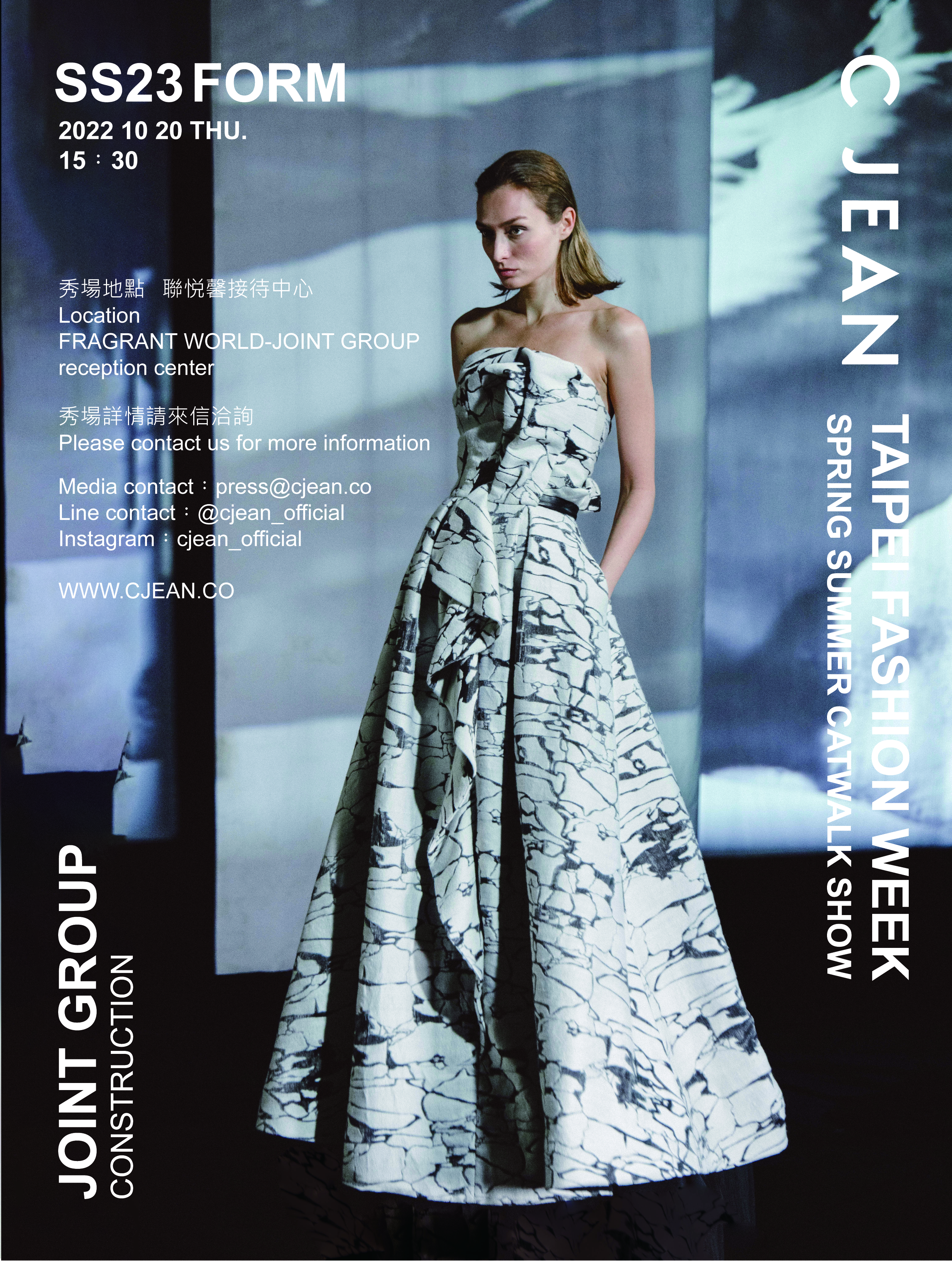 連續六季入選臺北時裝週服裝設計品牌C JEAN 即將於10/20(四),首度將臺北時裝週移師在台中港灣區舉辦,特別選在日本當代知名建築師團紀彥設計的「 聯悦馨 」接待會館發表23SS最新系列 -「FORM」。