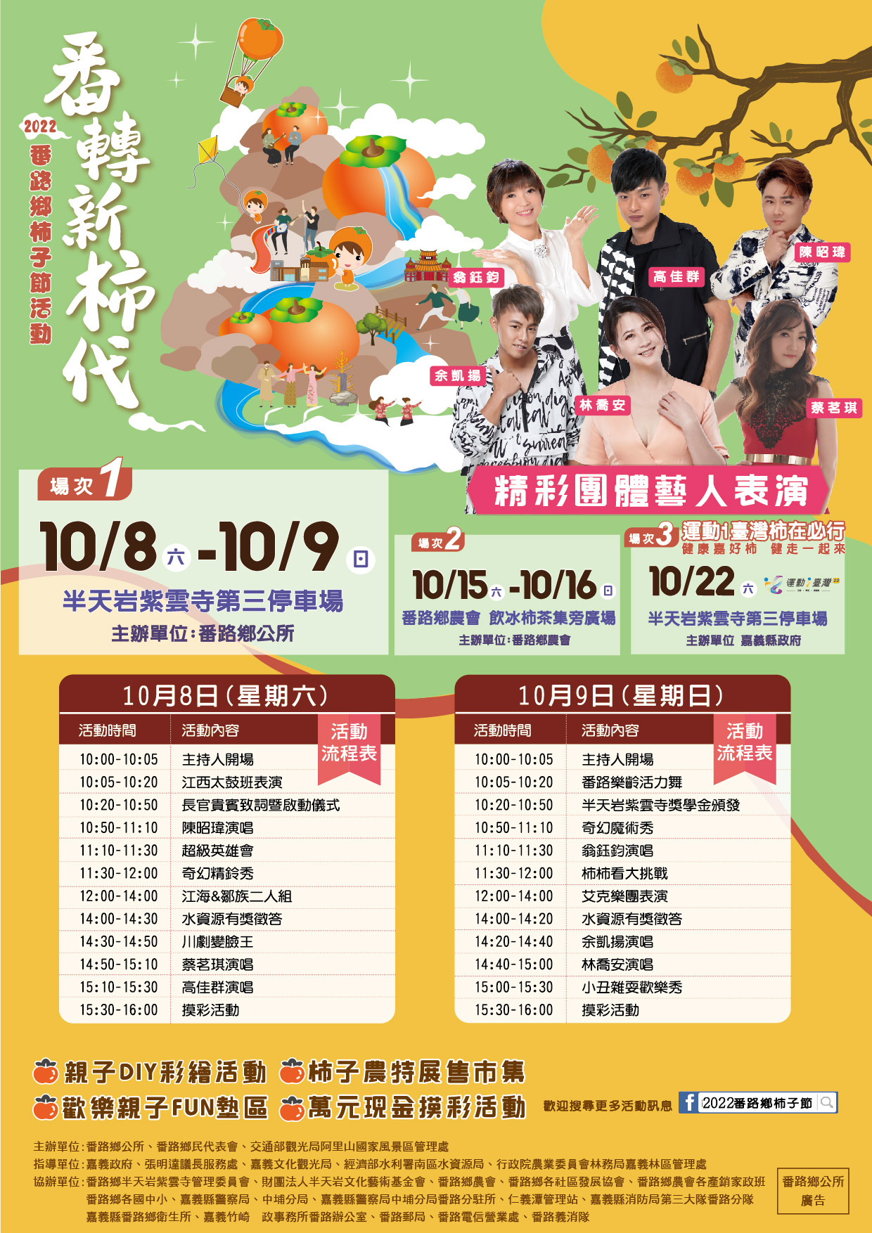 本次活動內容有柿子產品展售會、親子趣味闖關、現場比賽、摸彩大放送...等,相關訊息請至「