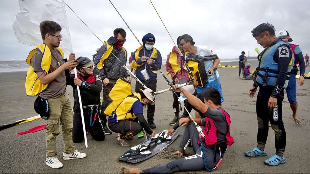此外,今日還有風箏衝浪體驗,每梯次為90分鐘,共計兩梯次,藉由循序漸進系統化引導學習風箏衝浪裝備介紹及操作方式解說、基礎風箏理線操作、定點控箏、拉力及上板體驗等,讓民眾解鎖難得的風箏衝浪成就,感受極限運動的飆速快感!