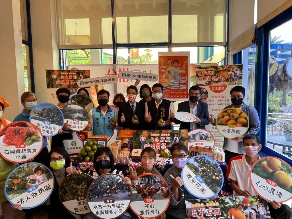 台中市政府農業局與石岡區農會共同輔導食水嵙休閒農業區,今(20)日在食水嵙休閒農業區石農咖啡館舉辦「分柑同味 共襄盛橘 採橘趣」遊程記者會,介紹今年度推出的2款採果農莊1日遊程,歡迎大家11月到台中石岡採橘趣、探索客家農村的純樸魅力,且即日起至12月24日在台中消費均可參加台中購物節,登錄抽大獎!