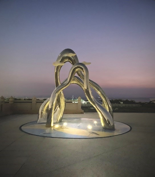 觀旅局說明,市府近年積極推展公共藝術打造美學城市,媽祖園區內的兩件大型公共藝術雕塑作品,以當地特有人文為靈感,承接媽祖慈愛精神,融合現地環境,作品材質採用316亮面不鏽鋼鍛造,晶瑩剔透亮麗無比,活化整個園區空間,且兩作品地面皆設置LED太陽能埋地燈光,夜間又將顯現另一風貌,可望在未來成為矚目的觀光特色亮點。