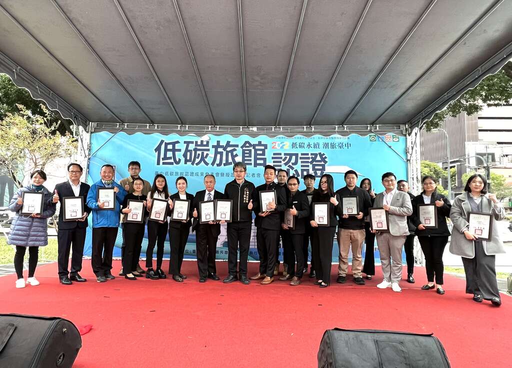 為實現台中低碳城市願景,台中市政府觀光旅遊局積極推動低碳旅館認證計畫,今(17)日在西區草悟道舉辦111年度「台中市低碳旅館認證成果發表會暨授證儀式」,共計20家旅館通過低碳認證,總計碳排放量較前一年度減少211.32噸,相當於2.5座文心森林公園一年的固碳量,透過低碳旅館的持續推動,期能為實現2050年台中市成為淨零碳排放城市貢獻心力。