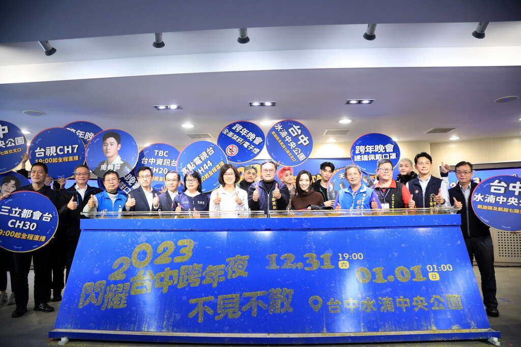 「2023閃耀台中跨年夜」活動時間將從31日晚間7時正式開唱,多組偶像歌手輪番演出,一同迎接幸福2023年;活動預計長達6小時、20組以上的精彩卡司,樂迷絕不能錯過!活動場地連續三年在中央公園舉辦,由大大寬頻群健有線電視、三立電視及台視共同製播,並於三立都會台、台視主頻、TBC台中資訊台、高點綜合台現場直播。市府提醒,參加跨年晚會仍建議全程佩戴口罩,全場禁止吸菸、健康安全第一,夜間活動請民眾盡量穿著淺色系的衣服,並多加利用大眾交通工具前往會場。