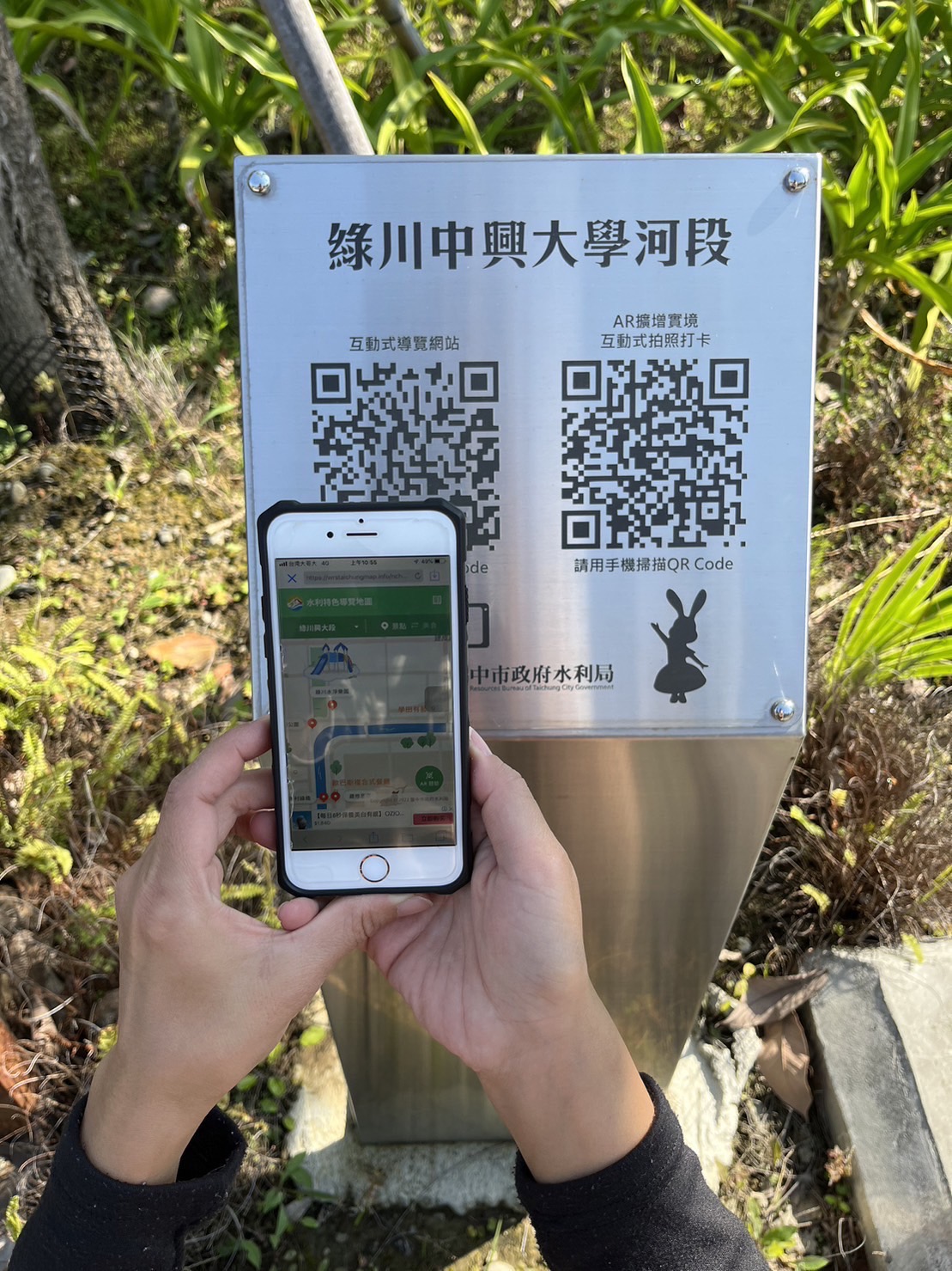 綠川興大段(學府路-忠明南路)位於南區中興大學旁,自109年完工啟用以來,在各項工程設計及景觀空間競賽中屢獲佳績。台中市政府水利局於綠川興大段設置裝置藝術「愛麗絲兔之夢」,民眾透過手機或平板掃描現場QR code,即可開啟現場導覽介紹網頁,還擴增AR實境,可與小兔一起拍照遊戲找美食,加上「螢光閃閃」如夢境般的夜間燈飾,歡迎市民朋友來逛逛,與卡哇伊的兔子一同感受過節歡樂氣氛。