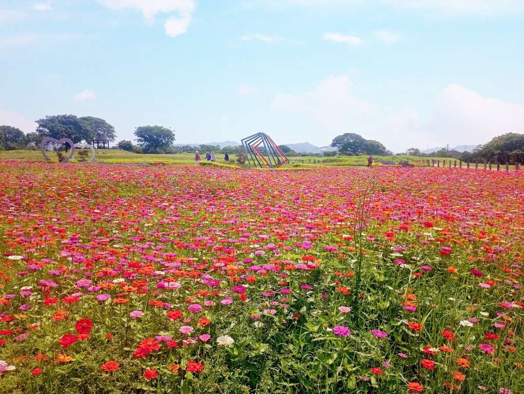 「台中賞花的選擇很多,但花海仙境非后里環保公園不可!」陳局長表示,后里環保公園原是垃圾掩埋場,在建設團隊努力經營下,成功轉型為兼具環保、生態、教育意義的生態公園,盛開的粉色百日草、黃金色波斯菊成為花海地景藝術,不論平日或假日都非常適合前往賞花踏青,也是親子同樂、情侶及網紅拍美照的打卡熱門地點。