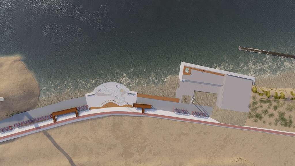 觀旅局提到,該案基地現況的既有水泥平台有良好的視野,藉由工程導入當地地理環境及生態主題,可對映蔚藍的台灣海峽、天空甚至是風箏衝浪作為拍照打卡背景,營造更具有趣味的生態教育場所,工程完工後,親水階梯、候鳥造型搖擺裝置、踏水鞦韆、鯨魚造型座椅等設施也將成為大安濱海樂園打卡新亮點。