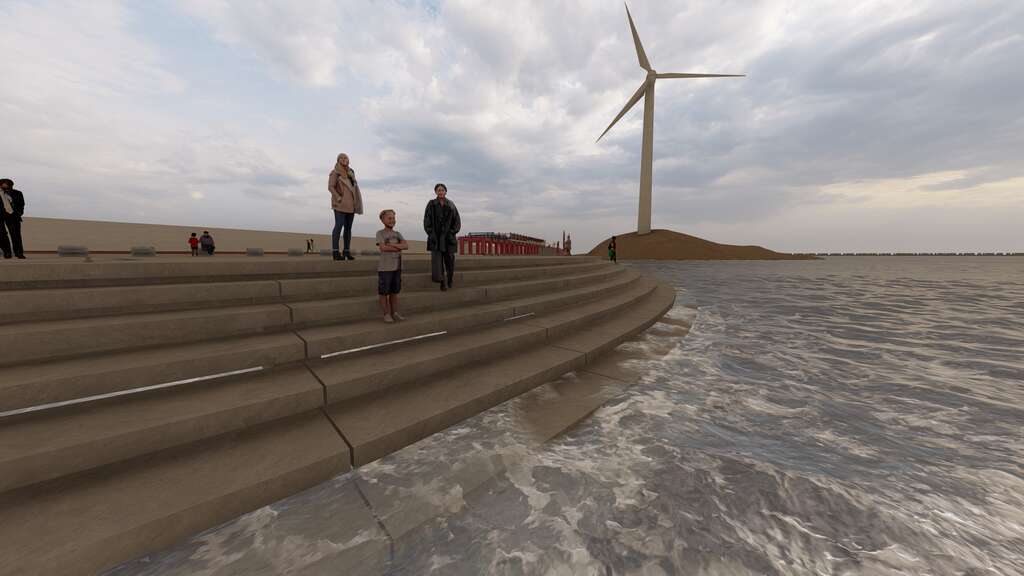 觀旅局長陳美秀說明,這次工程除優化北園既有廣場堤岸整體結構與提升安全性,同時形塑場景意象,凸顯基地的潮間帶特性及襯托海岸線的夕陽景致;另也規劃生態意象亮點設施、利用生態拓印工法進行廣場改造、增設造型意象座椅等,推廣在地豐富的濱海生態,並連結大安港「海翁窟港」的歷史脈絡,透過整合性的發展與濱海樂園戲水區景觀優化改善,創造遊客良好的遊憩體驗。