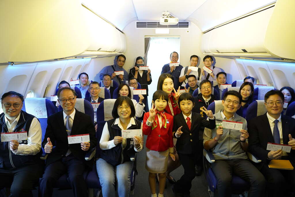 陳局長說明,為歡慶復航,觀旅局特別選在中央公園遊客中心特色飛航館舉辦記者會,現場從網路報到表單、大廳、機艙妝點,到二樓冰原劇場的德威航空小學堂特展、登機證及飛機餐等,都藏有各種巧思,展現中台灣對德威航空「仁川-台中」定期化航線開航的重視與期待。
