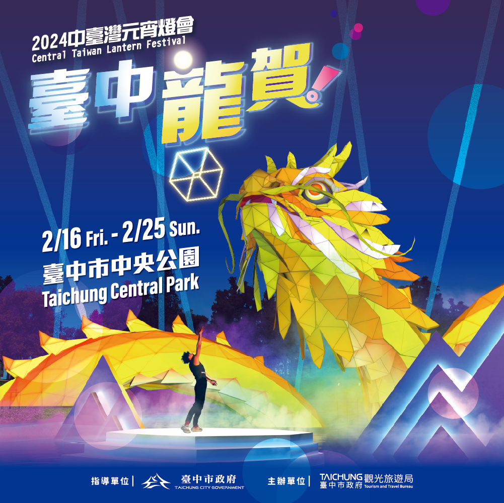 2024中台灣元宵燈會將於2月16日至2月25日於台中市中央公園盛大開展,今年以充滿創意、趣味的「台中龍賀」為主題,搭配「樣樣好」的台語諧音「龍賀」,呈現台中樣樣好、美好生活的城市魅力。台中市政府觀光旅遊局今(5)日率先公布今年主視覺,以幾何寫實風格設計呈現主燈黃金龍,整體設計呼應了中台灣元宵燈會堅持傳統花燈工藝的精神。