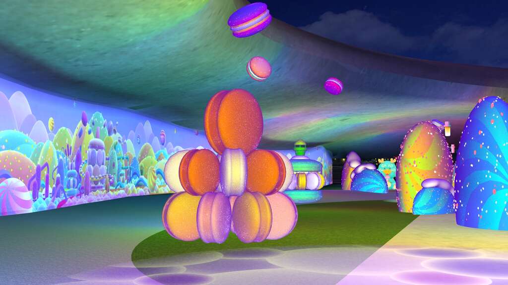 觀旅局說明,今年除了氣勢磅礡的巨龍主燈,另推出可愛爆表的「馬卡龍」燈區,由插畫家米拉操刀,延續去年中台灣元宵燈會「好冰友找朋友」燈區暖心創作,再設計萌翻天的可愛「萌卡龍」燈組,以愛心形狀的龍角、祥雲般的龍眉和元寶造型的龍鼻,呆萌可愛成為燈區亮點!占地面積約1公頃的絢麗馬卡龍世界,滿滿的繽紛色彩加上各式各樣的甜點,每個裝置都可愛又甜到心坎裡,令人彷彿置身於童話世界。