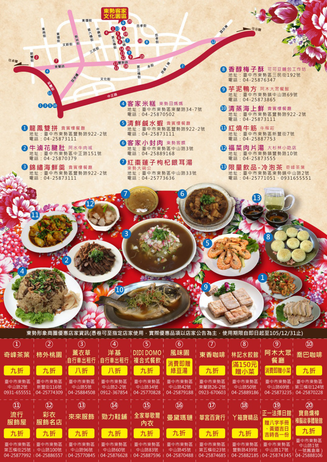 臺中市政府經濟發展局表示,由當地的東勢形象商圈規劃統籌,邀請在地業者共同參與,結合當地人事資源共同舉辦的這場客家美食饗宴活動,塑造出新的商圈生命力,讓更多的市民看見東勢客家的文化,是市府非常支持的,而這10家美食業者也都極力的幫忙,以最優惠的價格來宴請全國民眾,展現出東勢客家人的好客風情,在享受一桌3999的超值美食同時,還能參加摸彩及觀賞歌舞演出,對全國民眾來說絕對是物超所值,希望大家不要讓這麼好康的機會錯過了,數量有限,售完為止,趕緊報名參加!