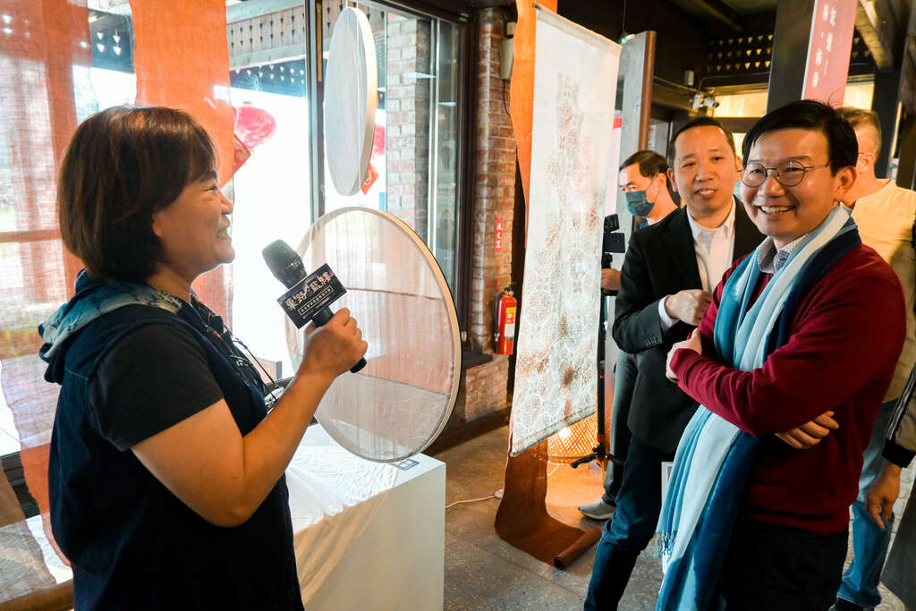 台中市政府客家事務委員會今(6)日在東勢客家文化園區舉辦「篳路藍縷~客家藍染新藝術創作展」開幕記者會,邀請曾獲編織工藝獎生活工藝類、藝術創作類、台灣工藝競賽傳統組入選、藍染流行創意服飾設計比賽客家花布組特優、韓國天然染色大展等獎項的藍染工藝指標人物劉俊卿,以及以蠟染著稱謝國鵬老師策劃特展,展期即日起展至5月26日,誠摯歡迎各地民眾前來觀展。