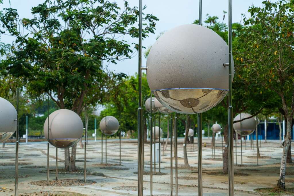 近日造訪中央公園的遊客,可以在溫度體驗區旁的樹林中,遇見一串大大小小的神奇氣泡,這些美麗有趣的泡泡,就是新亮相的美妙公共藝術《島球訊號》。到夜晚時分,球體化身奇妙生物變換著各式色彩,如同呼吸般閃耀光芒,夢幻感十足!台中市政府文化局表示,《島球訊號》是中央公園最新完成的公共藝術之一,座落於網紅咖啡廳Ores旁的樹林,民眾穿梭其中,可以感受奇幻浪漫的氛圍,體驗獨特的藝術景緻。