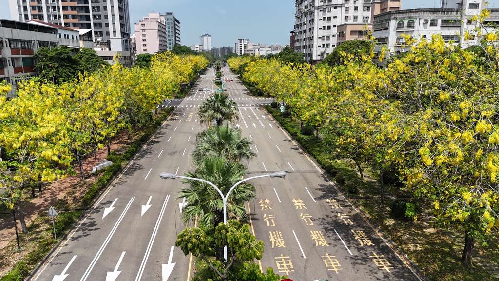 建設局說明,初夏最浪漫且吸睛的,就是阿勃勒的開花季,除南區興大綠園道、太平區坪林森林公園外,台中市區如旱溪東西路、龍德路一段、梅川園道、環中路四段、台中市政府前廣場、半平厝公園、黎新公園等多處人行道及公園綠地,皆可發現阿勃勒的蹤影,當金黃色的花瓣隨風飄落,或是鋪滿大地時,正是拍照的最佳時機,邀請市民朋友把握花期,帶著親愛的家人一起到公園內阿勃勒樹下野餐,享受最耀眼的「金黃色嘉年華」。