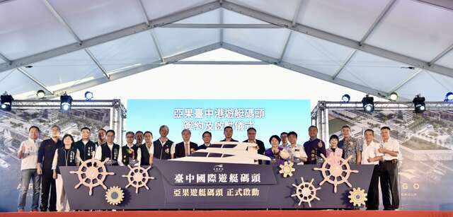 亞果台中港遊艇碼頭簽約暨啟動動工儀式昨(3)日於梧棲區台中港20號碼頭舉行,台中市副市長鄭照新代表市長盧秀燕出席表示,感謝亞果遊艇集團擇定台中建置專業遊艇碼頭,預計將能推動中部海洋文化與帆船產業,帶動周邊觀光、交通及住宿等發展,帶領台中航向國際。