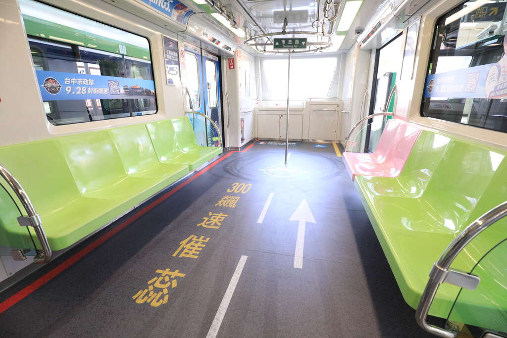 盧市長指出,Red Bull Showrun Taichung 將於9月28日在台中市政路登場,市府現正在做最後整備,除再加強城市景觀建設,各局處也搭配各式行銷活動。今日她首度開箱Red Bull Showrun Taichung 專屬的台中捷運彩繪列車,該列車由Red Bull授權,車廂完全複製當日市政路封街展演的現場,車廂中可看到整列列車變成賽道、市政路的路標,地上也有賽車燒胎痕跡,更有Oracle Red Bull Racing冠軍車隊賽車手照片,「歡迎大家來搭乘打卡」。