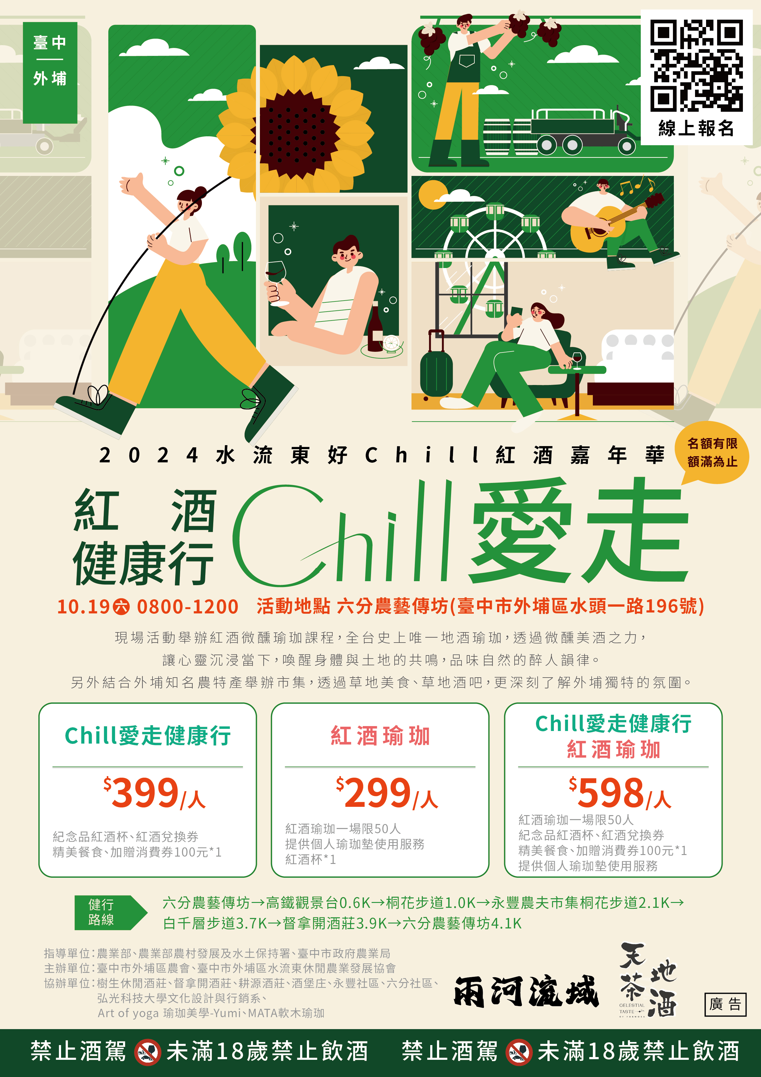 Chill愛走健康行+紅酒瑜珈:598元/人