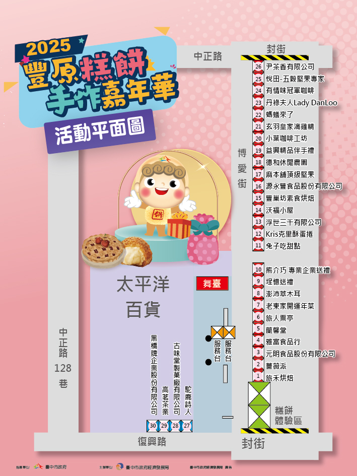 經發局長張峯源表示,台中糕餅年產值超過200億,技術、創意與美味都是全國頂尖,其中豐原是台中糕餅文化起源之一、百年老店齊聚,去年以「糕餅發源地體驗糕餅樂趣」為主題首度在豐原推出,受到民眾熱烈迴響,甚至願意排隊多等一個場次也要當「一日糕餅師」,今年加開100個名額,製作受親子及年輕族群喜愛的泡芙及派餅,盼透過寓教於樂、多重感官體驗方式,推廣產業,並擴大消費客群、提升市場商機,讓「糕餅之都」城市品牌屹立不搖。