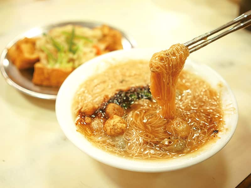 廟東夜市的排骨麵、菱角酥、肉丸;
