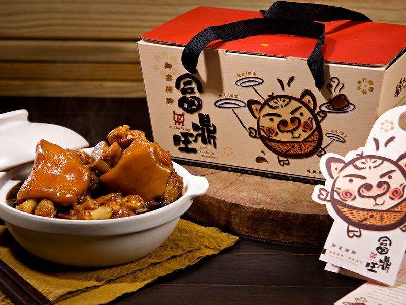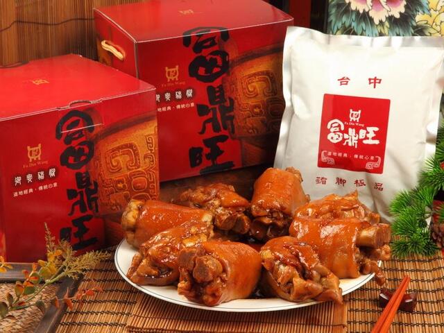 富鼎旺也推出豬腳禮盒,內有四腳蹄、四中節,滷汁與豬腳分開,包裝完善、存放容易,盛裝於特製的PP微波碗,可以直接微波加熱,方便過年團圓年菜食用,且貼心提供低溫宅配服務,讓春節美食美味上桌。