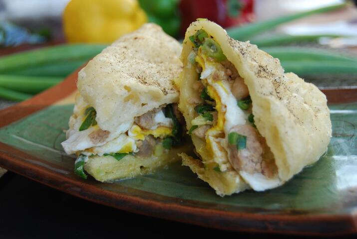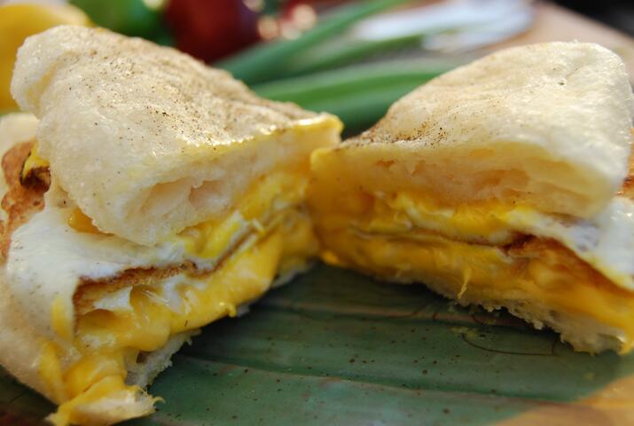 香甜的玉米粒和濃郁的起司無比對味,如今包裹在酥中帶Q的麵皮裡,再對夾著新鮮滑嫩的蛋,那種簡單卻又層次豐富的滋味,一直深受著女性顧客與學生們的厚愛。