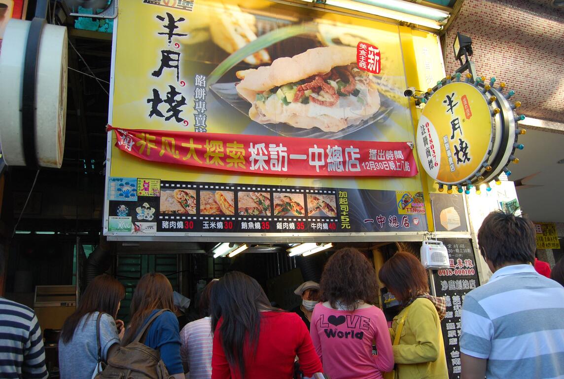 「半月燒」三個字一直在初次遇見的人心中存在著問號,這個似中非中、東瀛味頗重的名稱,常讓一中街夜市的人潮不免好奇駐足觀賞。