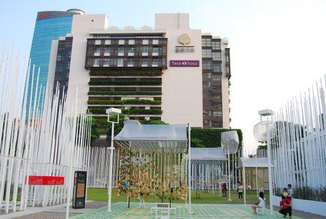 用了建築、結構、景觀、植物等各界的專家,歷時一年多、經三十幾次的改圖、無數次的現場勘查及生態研究後,終於克服結構、重力、選種、澆灌、排水、防颱、抗震等困難,成功地將約14萬棵的植栽架上牆面。又為了讓植栽與建築可以永續共生,我們的植生牆配備了完整的澆灌系統,用超過6千支隻滴管、3公里長的水路管線與數百個噴頭,讓植栽可以循環自生、無須更換,還成為許多花鳥蝴蝶的家,終於完成這個垂直生態花園的夢想。