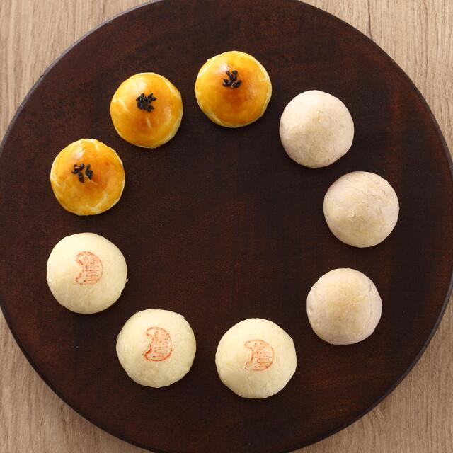迷你蛋黃酥:用紅豆、天然奶油與特級砂糖熬煮成泥,完全不加棗泥;鹹蛋黃精挑鴨蛋製成,兩者搭配得恰到好處。