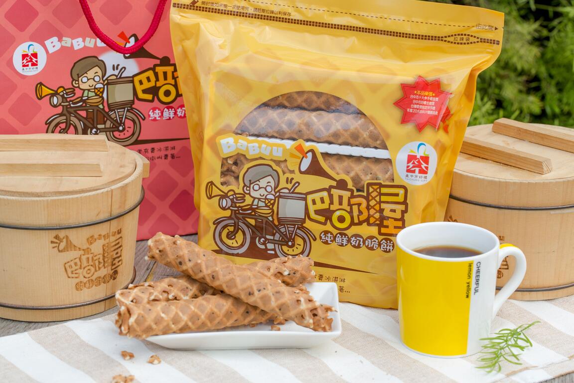 純鮮奶脆餅原是裝冰淇淋的甜筒杯,因為樸食無添加,吃過之後回味無窮,都會再回來回購,並是饋贈親友的最佳食品,是店內的人氣伴手禮,目前共有五種口味供選擇。