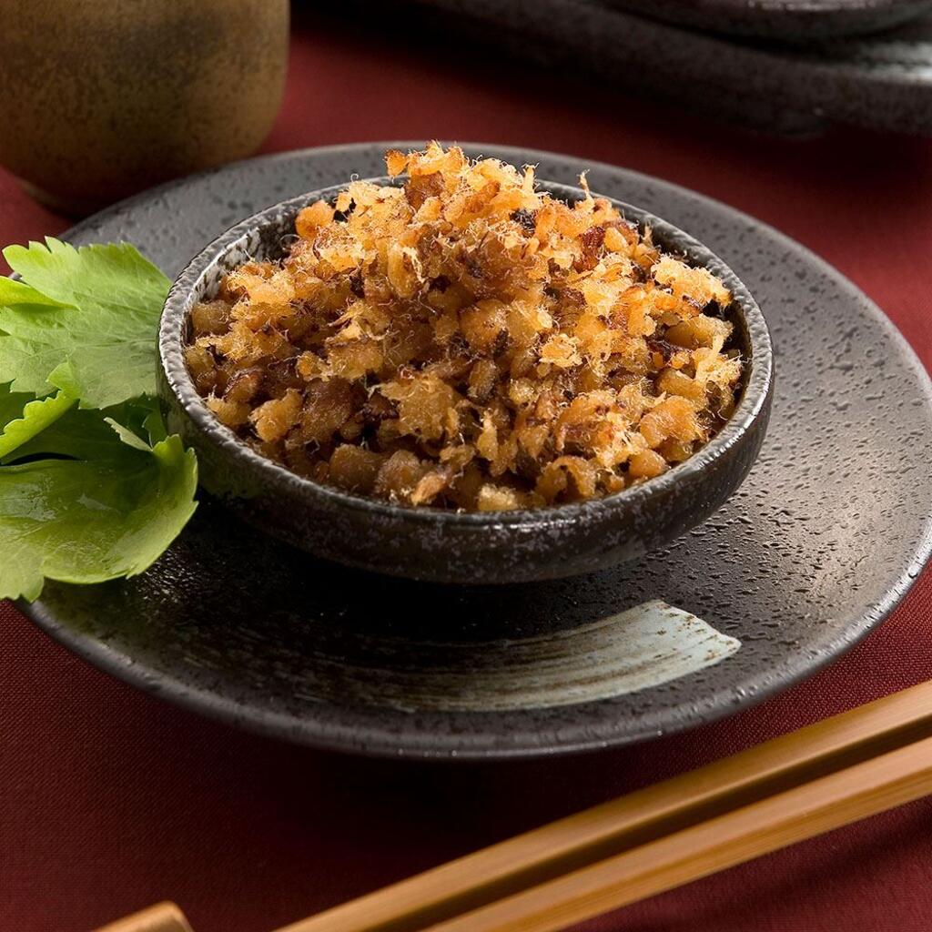 ‧特選大白旗魚,去除雜質,再加上自家提煉的豬油大火烘炒,品質特優